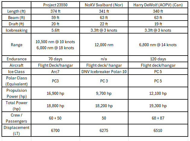 The general capabilities of the Ivan Papanin are comparable with other Arctic Patrol vessels, including Svalbard (operated by the Norwegian Coast Guard) and the six Harry DeWolf-class patrol ships of the Royal Canadian Navy: